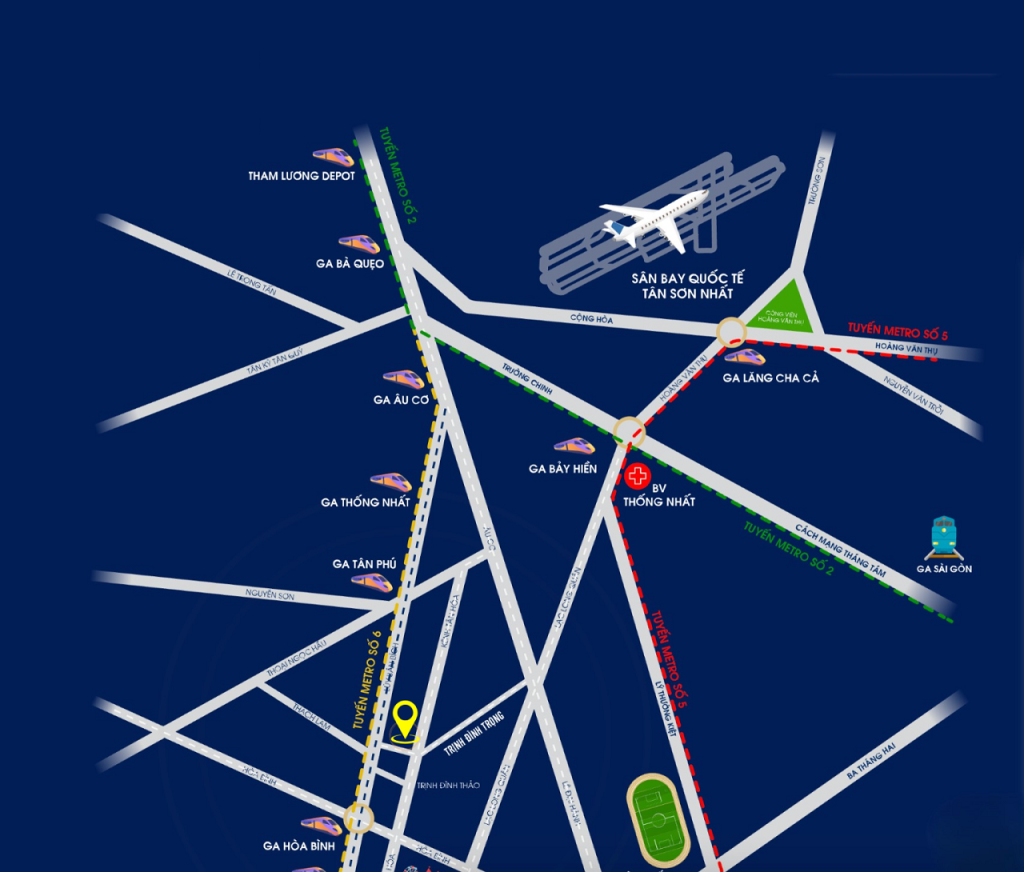 Vị trí của STC Tân Phú là yếu tố then chốt làm nên sức hút của dự án, với địa thế thuận lợi tại 348 Trịnh Đình Trọng, Phường 1, Quận Tân Phú, TP. Hồ Chí Minh. Nơi đây không chỉ mang lại sự kết nối dễ dàng với các khu vực trung tâm mà còn giúp cư dân tận hưởng sự yên bình giữa nhịp sống đô thị hối hả. Điều này làm cho dự án trở thành lựa chọn hoàn hảo cho những ai mong muốn một cuộc sống cân bằng, nơi có thể dễ dàng di chuyển đến quận 10, quận 11 hay quận 5 chỉ trong vài phút.